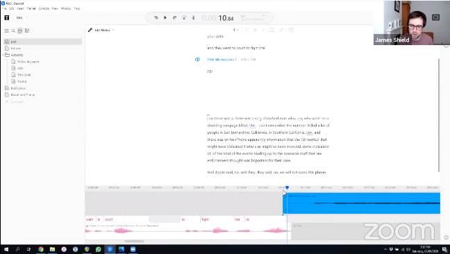 We’ve been doing the bulk of our editing in Descript since we were piloting in January 2020. It transcribes all your material and you can edit the audio directly from the transcript and in collaboration with others. It’s like Google Docs for sound.2